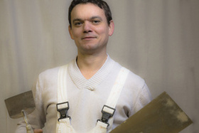 ...unser Mann für Fenster, Böden, Dämmung bei der Arbeit.